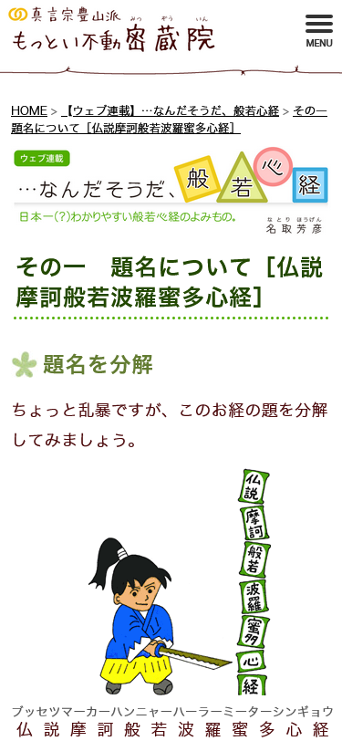 名物コンテンツ「【ウェブ連載】…なんだそうだ、般若心経~日本一(?)わかりやすい般若心経のよみもの~」も、スマホから読みやすくなり大変好評です。