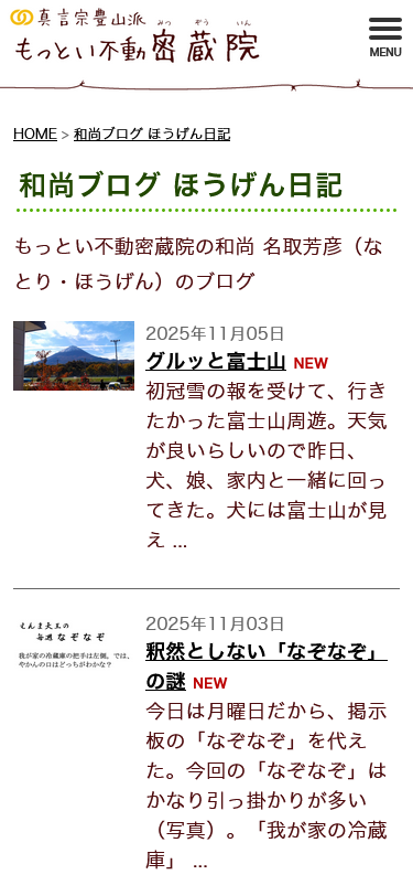 また、2007年からgooブログで連載していた「和尚ブログ ほうげん日記」の5000件を超える記事を、gooブログのサービス終了に伴い密蔵院公式サイトへ移転し、今後はこちらの公式サイトでブログ更新を続けていただけるよう対応いたしました。